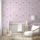 Hand-drawn pink bows paired with lace-style vertical stripes in soft pastel tones, creating a calm, gentle, nursery-friendly look. All artwork is hand painted by and copyright protected to Kaitlyn Thomas.