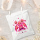 Cute little pink dragon with three heads and pink hearts around for kids birthday party