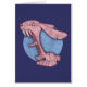 Angry, roze, cartoon konijnenkonijn met een brede open mond met lange vingers, op een blauwe cirkel, zwaar getroffen door de grote leeftijd. T-shirts, geschenken.