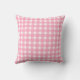 Een kussen met een roze gingham-design op voor en achter. Roze krab vooraan. Pas uw initiaal aan.