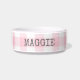 Deze gepersonaliseerde hondenkom is voorzien van een roze en witte gingham check plaid patroon met de naam van uw hond in grijs retro typemachine lettertype. Het perfecte accessoire voor huisdieren om in te passen in uw boerderij decor.