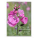 Een verbluffende foto van een roze hollyhock in volle bloei is het kenmerk aan de voorkant van dit wenskaart. Het heeft ook de inspirerende woorden van Psalm 150:6, die zegt: "Laat alles wat adembeneming heeft de Heer prijzen." De binnenkant van de kaart wordt verlaten leeg voor uw eigen bericht.