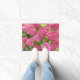 Decoratieve doormat met een foto-afbeelding van mooie, roze Hydrangea-bloei. Een mooi, bloemetjesontwerp! Gebruik binnenshuis of in overdekte toegangsgebieden. Selecteer uw slaapgrootte.