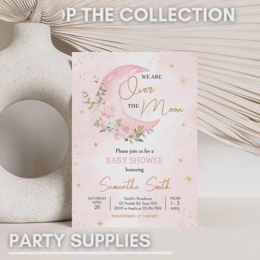 Pink Moon and Stars Baby shower Envelope Poster