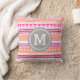 Grafische en moderne fuchsia warme roze, koraal, houtskool grijs en wit tribaal patroon aangepast monogram decoratief werpen kussen. Volledig aanpasbaar, voeg uw eigen initiaal voor een echt uniek punt van het huisdecor toe.
