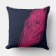 Pink Peacock Feather Navy bijna zwart Kussen