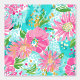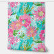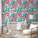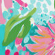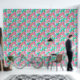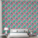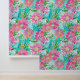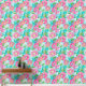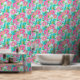 Een naadloos preppy patroon met roze bloemetjes op een minty groene achtergrond met kleine oranje stippen. Het ontwerp heeft een handbeschilderde uitstraling, die charmante bloemenelementen combineert met speelse stippen om een fris en stijlvol effect te creëer