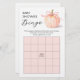 A cute pumpkin tied with a pink ribbon decorates these Baby Shower Bingo game cards. MATCHING items in our collection.