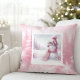 Pink Snowman Winter Scene Pinkmas Pillow Decor Kussen