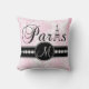 Dit Soft Pink and White Damask Pattern American MoJo Sierkussen met gepersonaliseerde monogram, het woord Parijs met de Eiffeltoren en een lijn witte diamanten op een zwarte band zullen er geweldig uitzien in je slaapkamer of woonkamer als een accentuop. Monogram Galerij Gifts© Elke Clarke Design ©