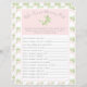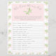 Pink sweet pea flowers and soft colored leaves pattern background “Who Knows Mommy Best” paper sheet game. Just as sweet as can be for a baby shower.