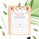 Create some baby shower fun with this elegant coral pink floral 'Baby Bingo' baby shower game sheet. Featuring a gentle watercolor wildflower design in warm tones of pink with playful script typography at the top adding a cheerful touch, this floral design brings a beautiful charm to your celebration. A 5x5 grid is included to write in what you think mom-to-be will receive and then mark each one off as she opens her gifts! Perfect baby shower fun for any season!
