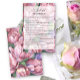 Waterverf retro stijl! roze pioenbloemen thema vrijgezellenfeest kaart met waterverf illustratie van boeket pioenrozen met groen. Elegant kalligrafisch handschrift, dat perfect is voor lente-, zomer- of herfstbruiloften.