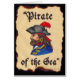 Linda Baysinger Peck schildert een piraatkapitein op de parketachtergrond. De tekst luidt "Pirate of the Zee". Geweldige kaarten voor degenen die genieten van renaissance feires en wasachtige avonturen. © Linda Baysinger Peck Alle rechten voorbehouden.