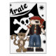 Een jongetpiraat met een aap- en schedel- en kruisenvlag en een tekst met de tekst "Pirate" is voorzien van piratenthema T-shirts, kaarten, muismatten, mokken, stickers en nog veel meer!