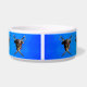 Pirate skull, eye patch, pirate pet, en twee gekruiste swords voor een klassieke Jolly Roger met een oceaanblauwe achtergrond.