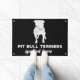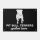 Pit Bull Terriers Spoiled here afbeelding, schattig Pit Bull Terrier silhouette en tekst in een noodlijdende krijstijl op een zwarte achtergrond.