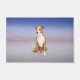 Een schattige Pitbull hond zitten met kleurrijke achtergrond, een perfect cadeau idee voor iemand die van dit hondenras houdt.