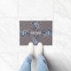 Dit vreemde Pitbull-doormat zegt: "Welkom" bij je gasten. Het show vier afbeeldingen van een knappe Blauwe Knoop-Pitbull genaamd Sarge. Sarge kijkt naar je op met brede ogen, floppy oren, en een komische blik op zijn gezicht, terwijl hij vol spanning wacht om je gasten naar je huis te begroeten.