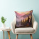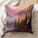 Add a warm and peaceful touch to your home with this stunning throw pillow featuring a pixel art sunset mountain landscape. The design showcases a cozy wooden cabin by the lake, surrounded by pine trees and misty mountains under a glowing sunset sky.