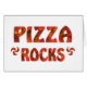 Pizza-liefhebbers kunnen plezier hebben met dit kleurrijke design met spiralen en de woorden - Pizza Rocks.