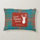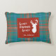 Leuk thuis lief kerst accent kussen kunt u gemakkelijk aanpassen door te klikken op de "personaliseren" knop, Met herten silhouet en clan Wilson tartan in sinaasappel, en turquoise check. Perfect voor uw gezellige nachten in tijdens de feestdagen. Maakt een geweldig cadeau