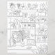 Moderne zwarte en witte Floral house planten decor werkruimte met bloemen en bladeren illustratie, perfecte papierwaren die je aan één kant als kleurpagina kunt gebruiken.