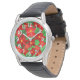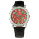 Dit man horloge heeft een kerstontwerp van poinsettias, verspreid over een gebied met groene strepen.