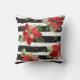 Poinsettias on Black, White Stripes Pillow 2 Kussen