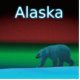 Een polair beer roamt het ijs tijdens de lange polaire nacht; de noordelijke lichten in rode en groene gloed op afstand. De tekst die "Alaska"leest verschijnt in gloeiend blauw en wit. Polaire beren zijn zeer bedreigd. Hoe lang zullen dergelijke scènes nog kunnen voorkomen? Help Polaire Beren te redden van uitsterven.