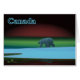 Een polair beer roamt het ijs tijdens de lange polaire nacht; de noordelijke lichten in rode en groene gloed op afstand. De tekst "Canada" in gloeiend blauw en wit verschijnt ook.