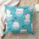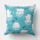 Playful polar bears in Santa hats float on icy blue seas surrounded by igloos, fish, and snowflakes. A cool Christmas favorite.