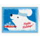 Schattige polair beer met chef-kok pet serveren van een diner van sneeuwvlokken op deze culinaire kerstkaart voor chef-koks, catering, restaurants en andere voedsel of koken pro's.