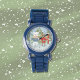 Schattige kind horloge met een poolster beer en zijn rendier vriend klaar om te skiën . Personaliseer het met de naam van het kind met behulp van de meegeleverde sjabloon. Kies de horlogekleur en -stijl. © ArianeC Illustrations-Alle rechten voorbehouden