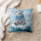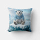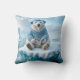 Een polair beer met een blauwe trui, oorkappen en pet zit op een ijsberg terwijl hij een krant vasthoudt met de titel "Polar News".