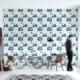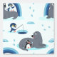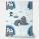 A wallpaper with a cute cartoon pattern with friendly penguins and seals. There' a little blue penguin with his fishing pole and a gentoo penguin eating an ice cream while having a great time with his seal friends. I think this is a wonderful motive for a little boy's room Check out my "Polar Pals" store to see this and similar designs on other products!