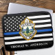Laptophoes van de politie van de Thin Blue Line - Amerikaanse vlag in de kleuren van de vlag van de politie, modern zwart-blauw ontwerp. Pas je aan met je afdeling logo, en personaliseer je met de naam van de politie. Deze persoonlijke laptophoes van de politie is perfect voor politiediensten en rechtshandhavingsinstanties. COPYRIGHT © 2020 Judy Burrows, Black Dog Art - Alle rechten voorbehouden. Laptophoes van politie Department Custom Logo Law Enforcement