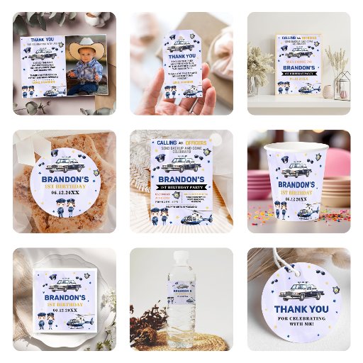 Politiejongen 1e verjaardagsfeestje cadeau Labels