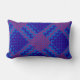 Een kic Lumbar Pillow, met een faux-patchwork patroon van Midnight Blue, Dazzling Blue en Plum Pink chevrons en polka dots. Dit patroon past in alle Pillow-formaten. Een deel van het collectie van Posh & Painterly 'Paarse Pop'.