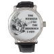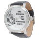 Polshorloge met Alice in wonderland motief van een wit konijn met schrijven dat zegt "De hoera ik ga de achterste die ik krijg!"