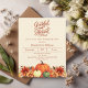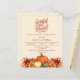 Een zacht beige achtergrond. Versierd met pompoenen en oranje en gele bloemen. Personaliseer en voeg de partijgegevens toe. Tekstscript: Dankbaar en gezegend. 1 vel = 1 uitnodiging bedrukt rand tot rand.