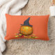Dit kussen is een geweldig additief voor je Halloween decoraties. Een afbeelding van een hefboom of lantaarn met een heks pet. Deze pompoen zitten midden in een bed van herfstbladeren. Dit ontwerp is op een oranje achtergrond. Een zwarte achtergrond staat op de achterkant van deze kussen.
