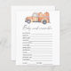 Pompoenen uitnodiging met een oranje truck gevuld met pompoenen. Overeenkomende objecten beschikbaar. ANTWOORDEN: VERLANGENS, HUILEN, FLES, NACHTLICHT, SLAAP, KINDERWAGEN, EPIDURAAL, BOER, HOGE STOEL, LUIERTAS, SWADDLE