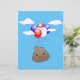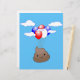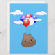 Poo emoji vliegt met ballonnen in blauwe lucht