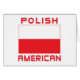 Kleurrijke rode en witte Poolse vlag met de woorden Pools bovenaan en Amerikaans onderaan. Show uw Pools-Amerikaanse trots in de grote landen van de Verenigde Staten van Amerika en Polen.