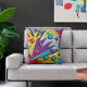 Pop kunstkleurrijke abstracte drukkerij gooit kussen. Decoratieve pop kunst inspireerde kussen in heldere levendige kleuren met een abstract ontwerp van vormen en spetsels van paars, rood, blauw en geel. Als je een retro vibe wilt toevoegen aan je woonkamer of een donkerdere bank wil ophelderen, zal dit kussen dat alleen maar doen!