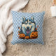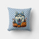 Pop Art Smilling Husky Dog met Pompoenen Halloween Kussen