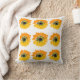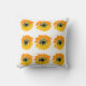 Pop Kunst Zonnebloemen Decoratieve Sierkussennen Festive yellow and oranje pop art sunflower gooit kussen met 9 zonnebloemen aan de voorzijde en een platte gele/oranje achterzijde.