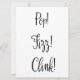 Een eenvoudig en mooi kalligrafie "Pop! Fizz! Clink!" bord. Dit met de hand geschreven bord kan worden gebruikt om een moderne stijl toe te voegen aan huwelijksrecepties, bruidsfeest, verjaardag, Oud en Nieuw of vrijgezellenfeest.