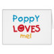 Poppy Loves Me T-shirts, kaarten, stickers, bodysuits tassen, en meer met kleurrijke rode, gele en blauwe tekst en hartontwerp. Deze Poppy Loves me kleding en cadeau items zullen poppy glimlach maken!